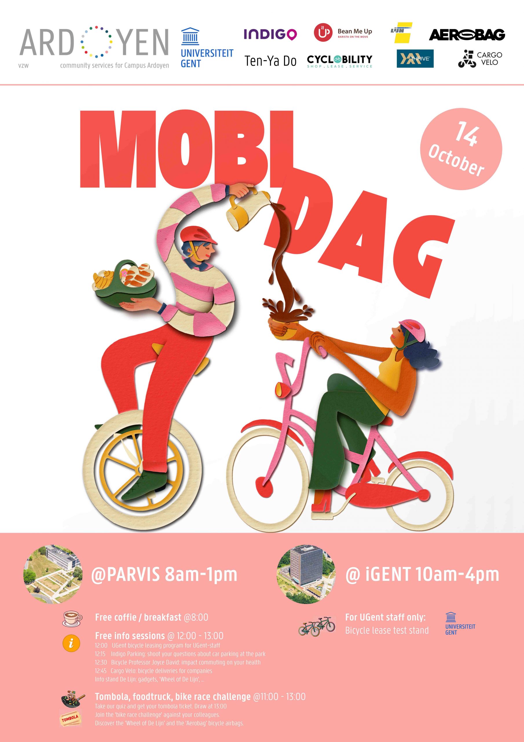 Do you want more info about the UGent bicycle lease program, parking facilities at the park (by Indigo), info on the impact of alternative modes of commuting on your health, CargoVelo (last mile deliveries by bike), De Lijn or Aerobag (airbags for cyclists), find all info at info stands and info sessions at the Parvis between 12:00 and 13:00.